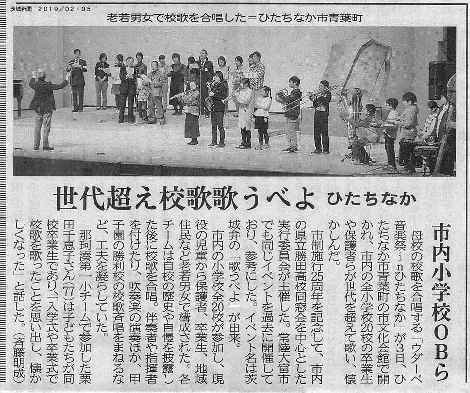 地域の皆さんで小学校の校歌を合唱する「ウダーベ音楽祭INひたちなか♬」を主催・開催致します♪